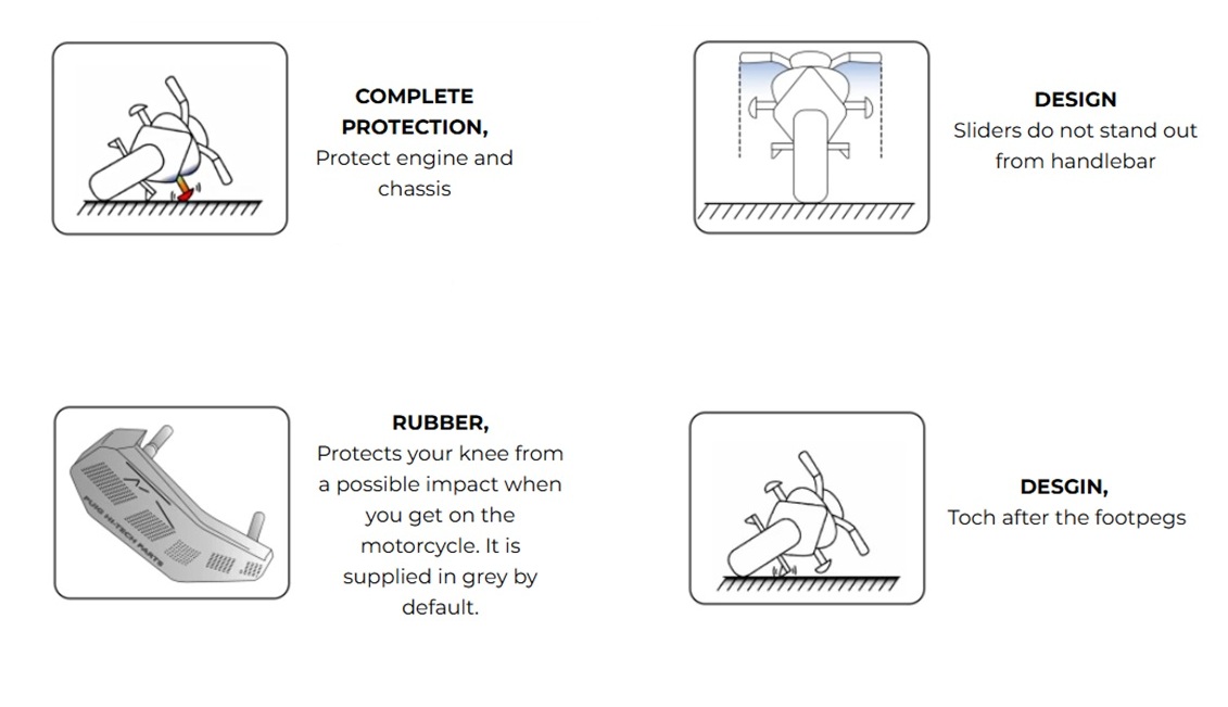 Puig’s R19 Frame sliders provide integral protection of the chassis and engine of your motorcycle, as well as providing additional protection to your knees with the included rubber endings. The carefully designed pucks made of Nylon will fit perfectly with the looks of your bike, as it does not extend from the handlebar and touch before the footrests.