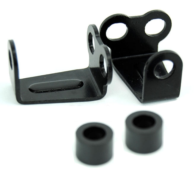 From DRC, these brackets bolt to the top triple clamp and allow you to attach turn signals that have an 8mm diameter stud. They work perfectly with the DRC Type 601 and DRC Type 602 Flashers, making it very easy to replace those huge factory front turn signals.