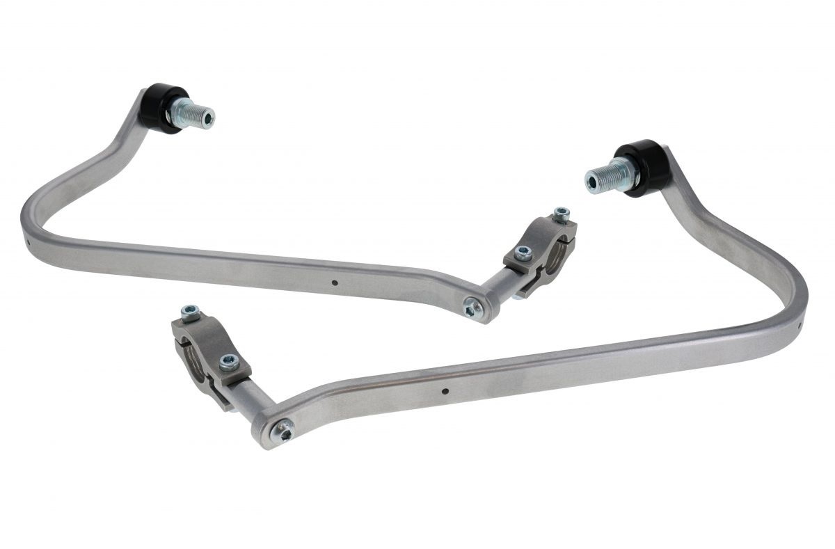 Optionally you can add on Barkbusters plastic guards that screw to the front of the aluminum guards.