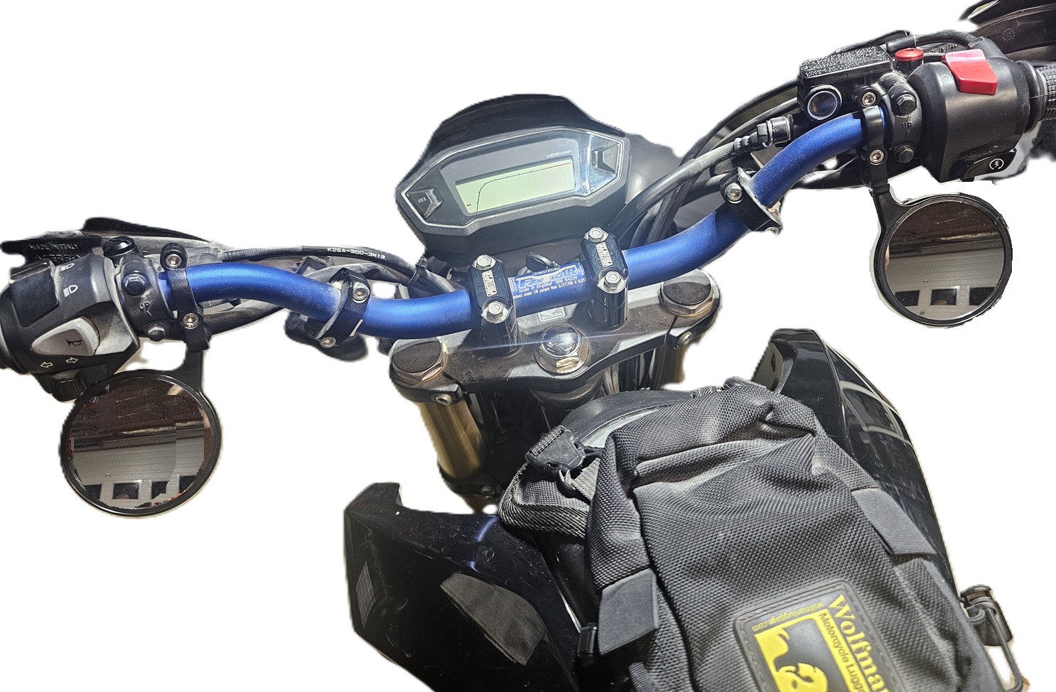 Fitment: These mirrors will fit most 7/8" or 1 1/8" handlebars. On oversized 1 1/8" bars, you will need to clamp them out near the controls where the bars taper down to 7/8". These will fit most dual sport, supermoto and off-road bikes thanks to their narrow profile. If you have a bike with a wide gas tank, these may not work mounted under the handlebars because they can hit the tank when you turn your handlebars.'