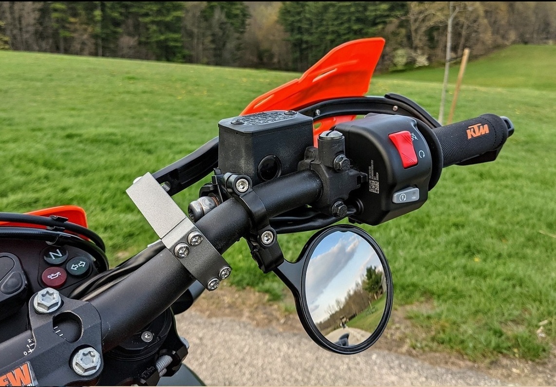 We use these mirrors on our KTM 690 SMCR Project Bike and they are our favorite mirrors for supermoto street riding.