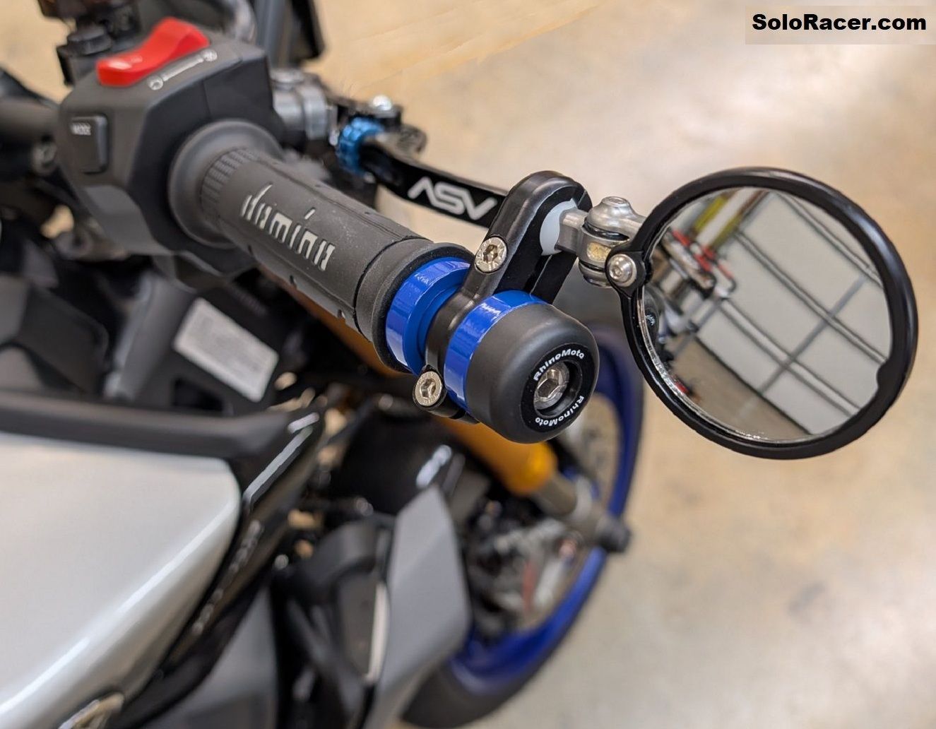 Looking for the best way to mount bar end or clamp-on style mirrors on your 2024+ Yamaha MT-09 / MT-09 SP or 2021-2023 Yamaha MT-09 / SP ? Keep reading. On our 2024 Yamaha MT-09 SP Project Bike, we noticed right away that the stock mirrors, especially the left side mirror, didn't provide good visibility and you're staring directly at your shoulders. We immediately pulled those mirrors off the bike, and have installed CRG bar end mirrors with these trick Rhino Moto Bar End Sliders that have Mirror Mounts built into them. The bar end sliders not only mount your mirrors, but then they also act as sliders and protect the ends of your handlebars in the event of a drop or crash. Scroll through the photos above to see various photos of them installed on our project bike.