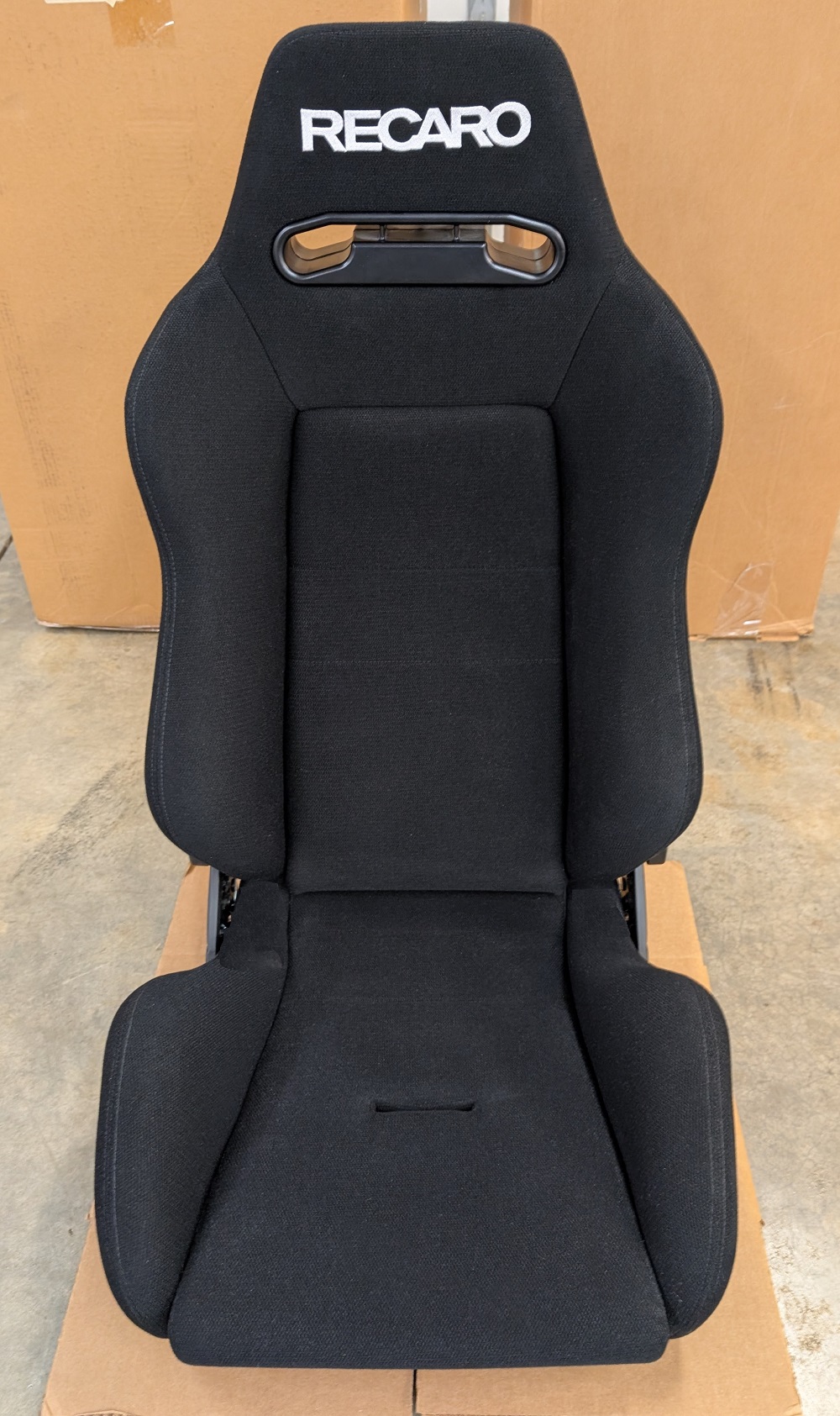 Black cloth with white Recaro lettering
