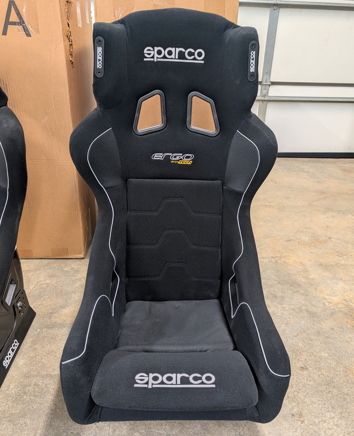 These are brand new, never mounted in a vehicle, Sparco Ergo Seats, size Medium... but they are several years old and have been stored at our shop since we purchased them for a project car that never got built.