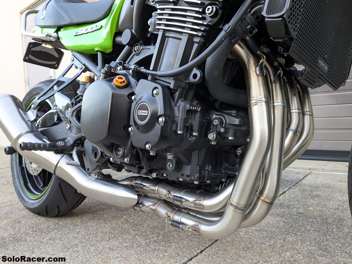 One of the best modifications you can do to your 2018+ Kawasaki Z900RS is replacing the stock header pipe section of the exhaust with an aftermarket header like this one from Leo Vince. My main complaint with the stock exhaust on the Z900RS was that it was too quiet at speed and couldn't be heard above the wind noise. An aftermarket header is the answer.... it really wakes the bike up from a sound standpoint, giving it a more agressive throaty sound, without being obnoxiously loud. These header pipes are designed to work with the bikes stock muffler, which is one of the better designs, and looks / sounds great.