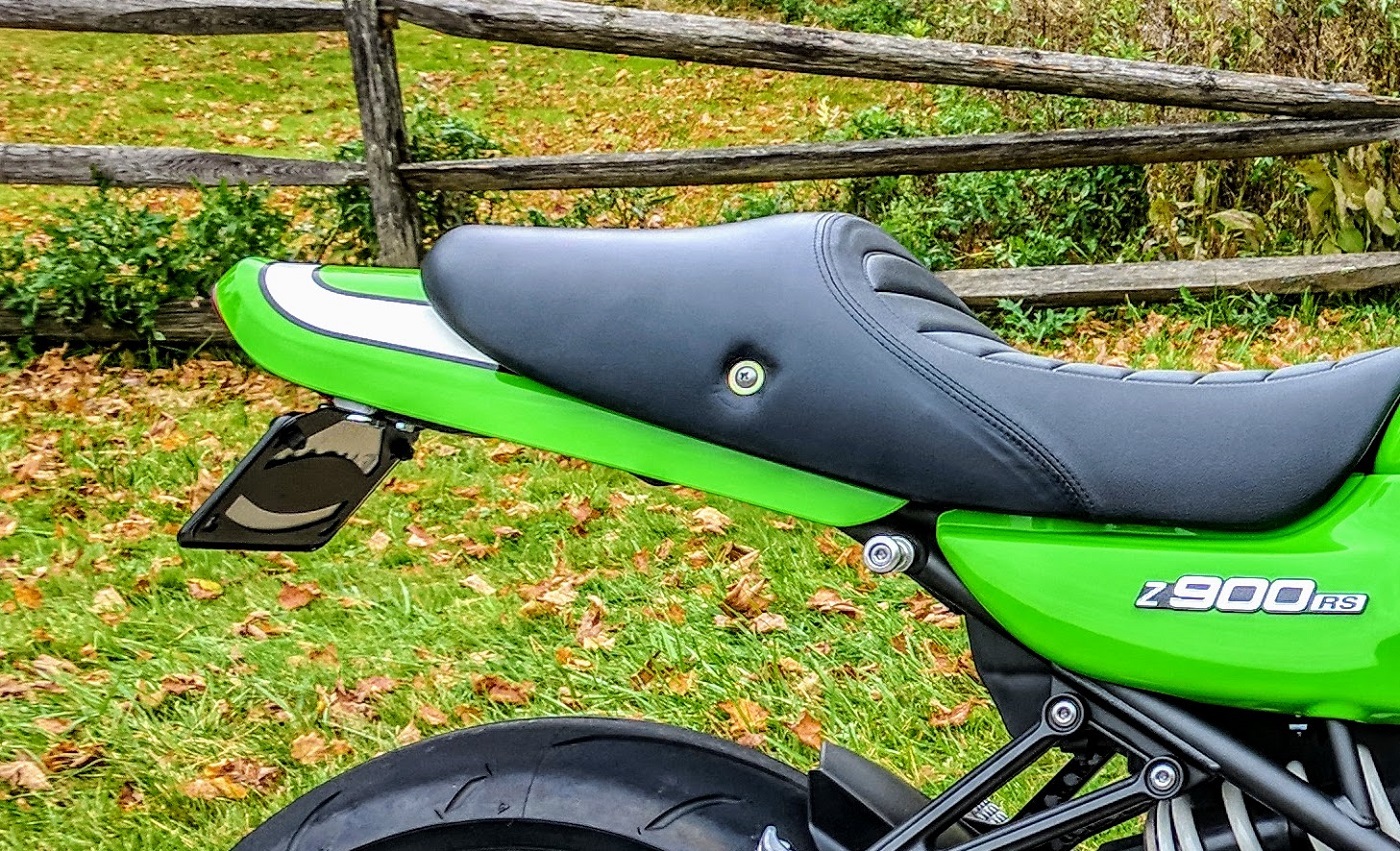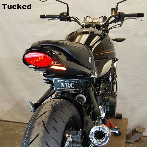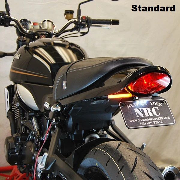 The New Rage Cycles ( NRC ) fender eliminator for the Kawasaki Z900RS and Z900RS Cafe retains the stock tail light / brake light, but replaces the ugly plastic piece that hangs down below it and holds the turn signals and license plate, replacing that with a much nicer looking piece that holds your license plate. It will also include integrated LED tun signals and a license plate light. The kit is completely plug and play, easy to install, and saves you time and money on labor costs, allowing you to plug in and ride.