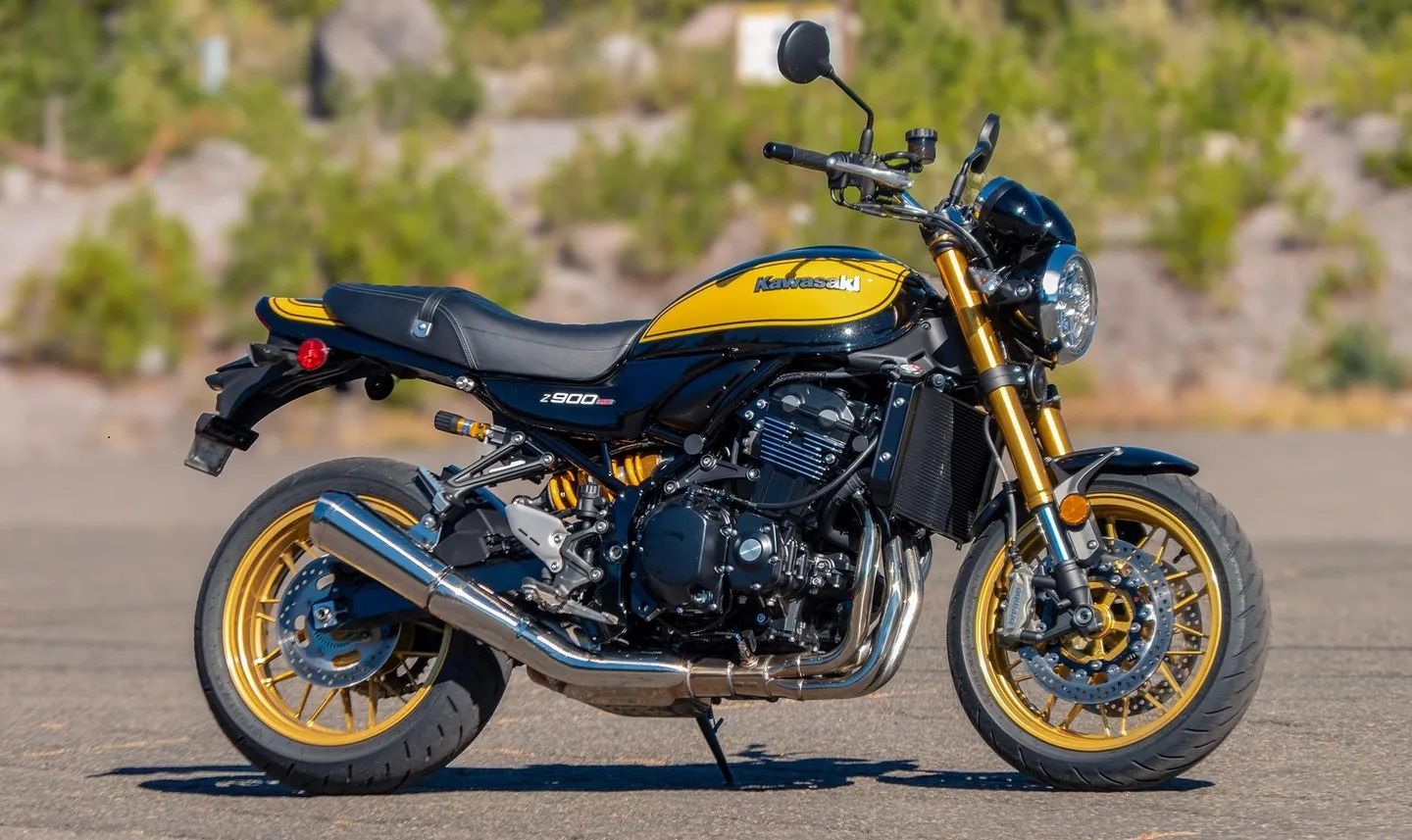 For the 2022 model year, Kawasaki introduced the Z900RS SE model, which continued on through the 2025 model year. The Z900RS SE had the same general specs as the standard Z900RS, but has some pretty serious upgrades to set it apart. First off, it comes with the beautiful “Yellow Ball” paint scheme, along with gold wheels, and gold forks. IMHO it's one of the best looking bikes on the market. Additionally, the SE model gets Brembo 4.32 monobloc four-piston brakes and an Ӧhlins S46 monoshock that comes directly off the sportier Z900 SE model.